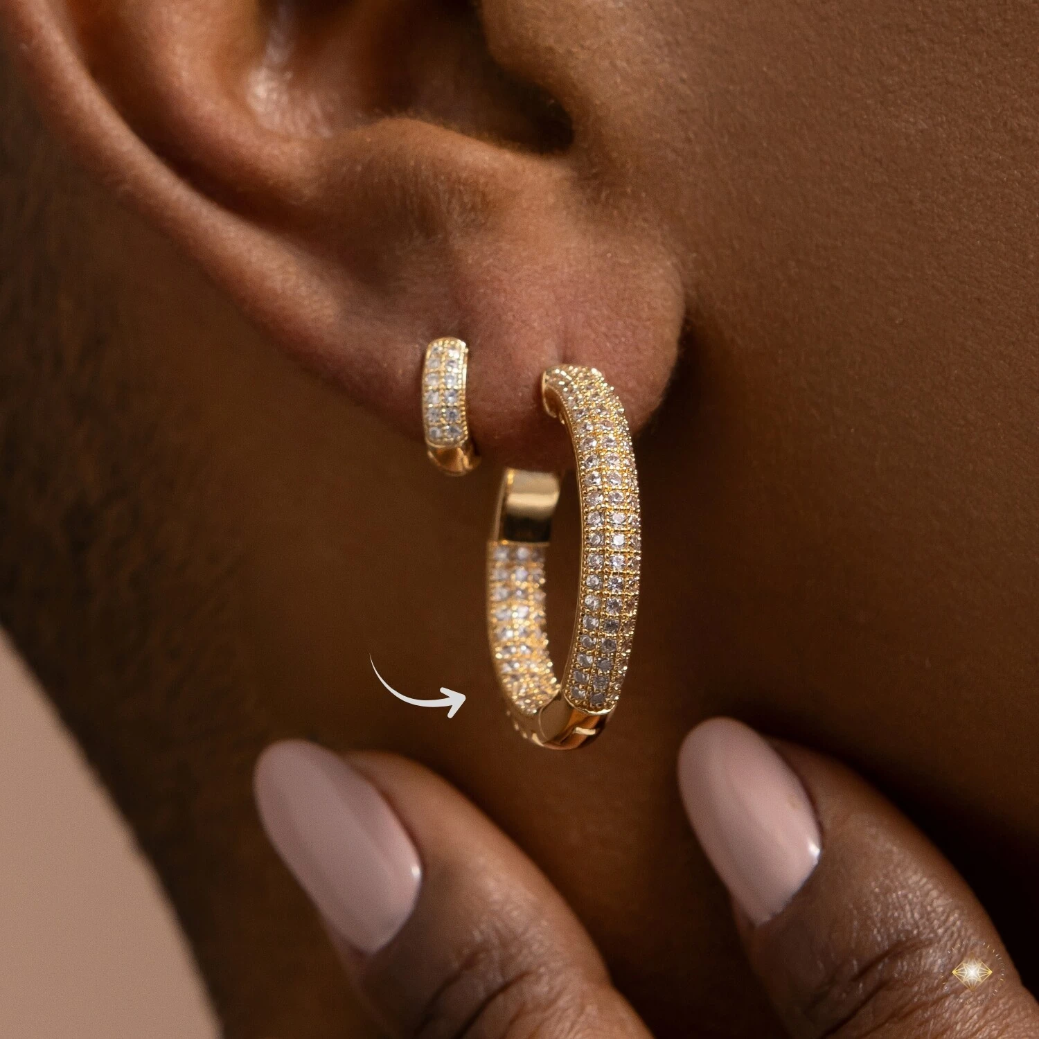Um clássico com toque apaixonante. A Argola Cravejada Corações Vazados é daquelas peças que encantam nos detalhes: sua fileira de zircônias brilha tanto na parte externa quanto na interna da peça, proporcionando um visual impecável de qualquer ângulo.