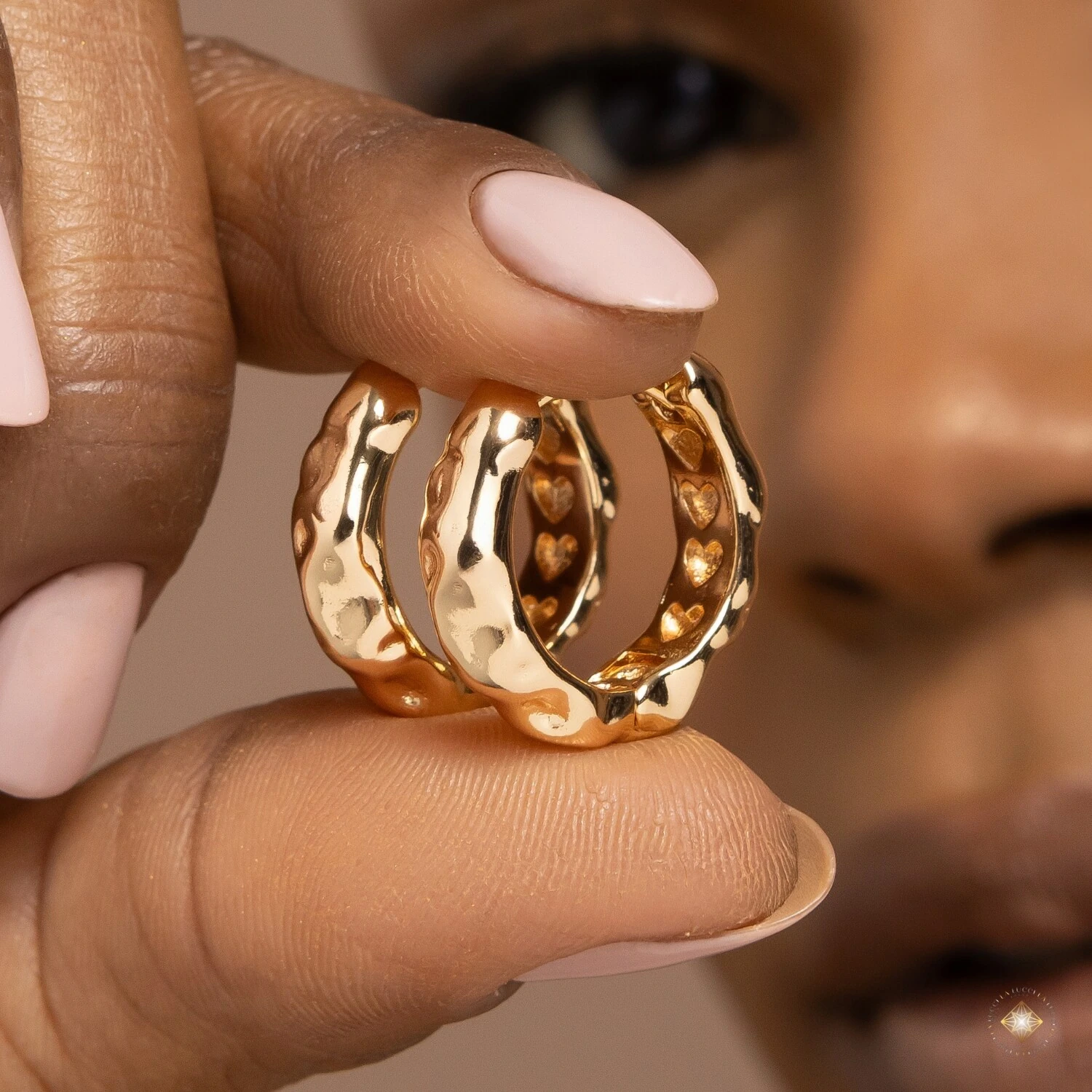 O grande diferencial está na parte interna: totalmente forrada com delicados corações, um detalhe sutil e encantador que transforma a argola em uma semijoia cheia de personalidade e significado. Uma peça perfeita para quem ama acessórios com design diferenciado, que unem romantismo e sofisticação de forma atual.