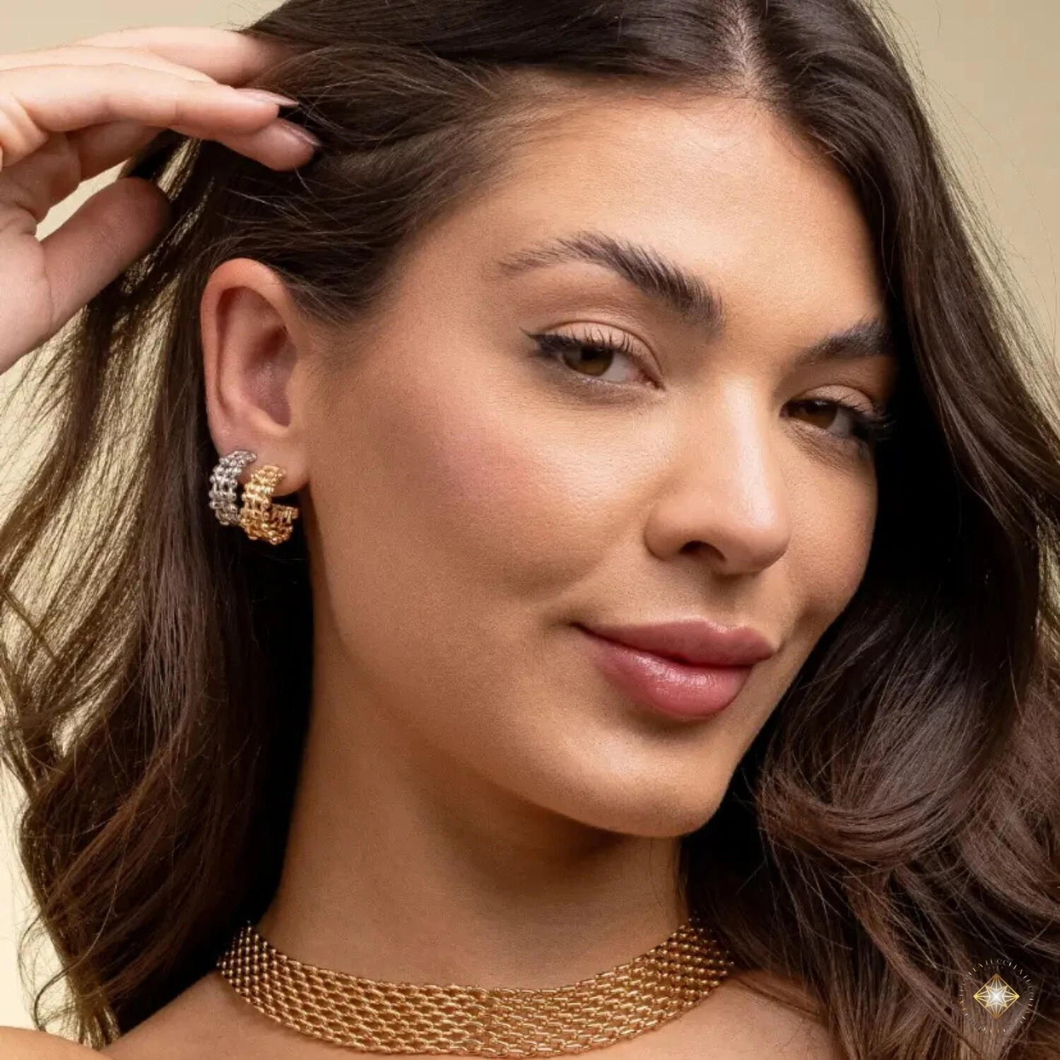Com um design impactante e estrutura trabalhada, a Argola Texturizada Vazada é perfeita para quem ama acessórios modernos e com presença. O acabamento polido realça o efeito tridimensional da textura, criando um visual arrojado, mas ao mesmo tempo versátil.