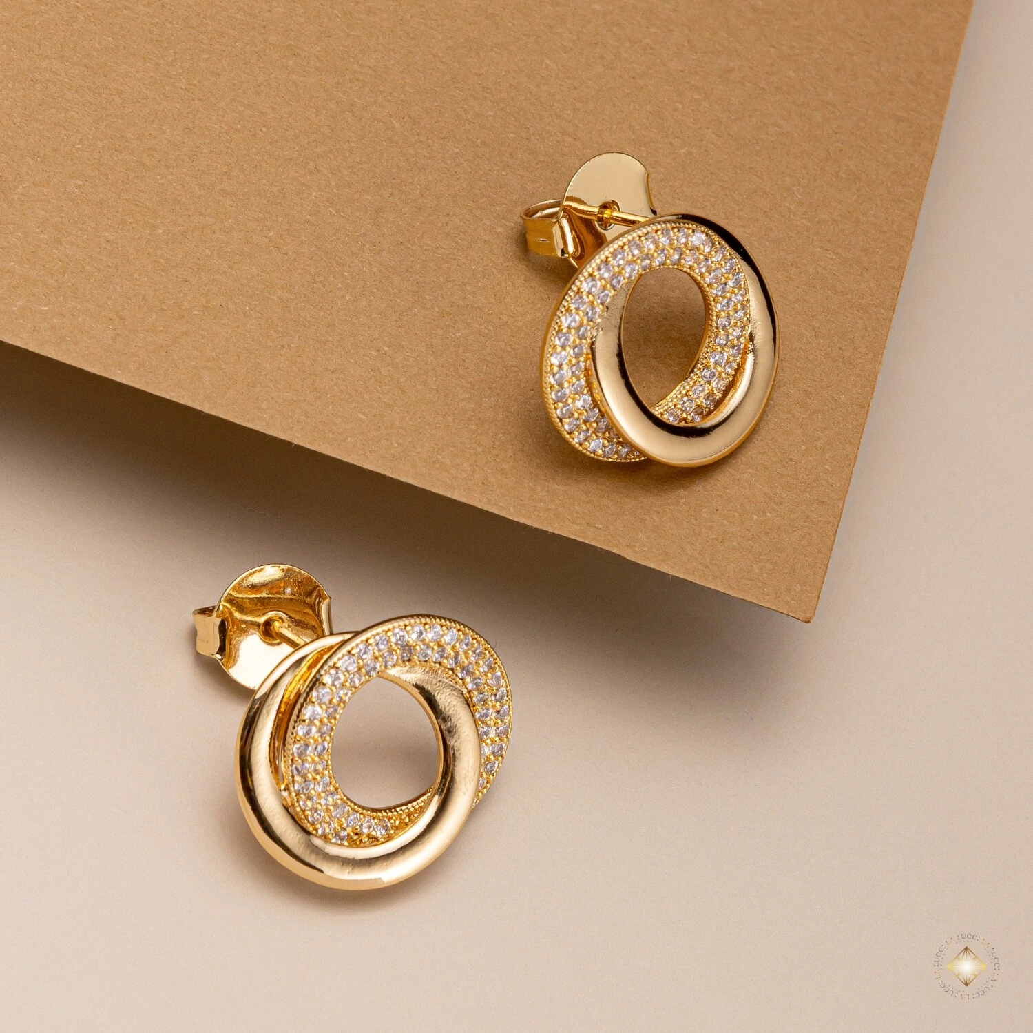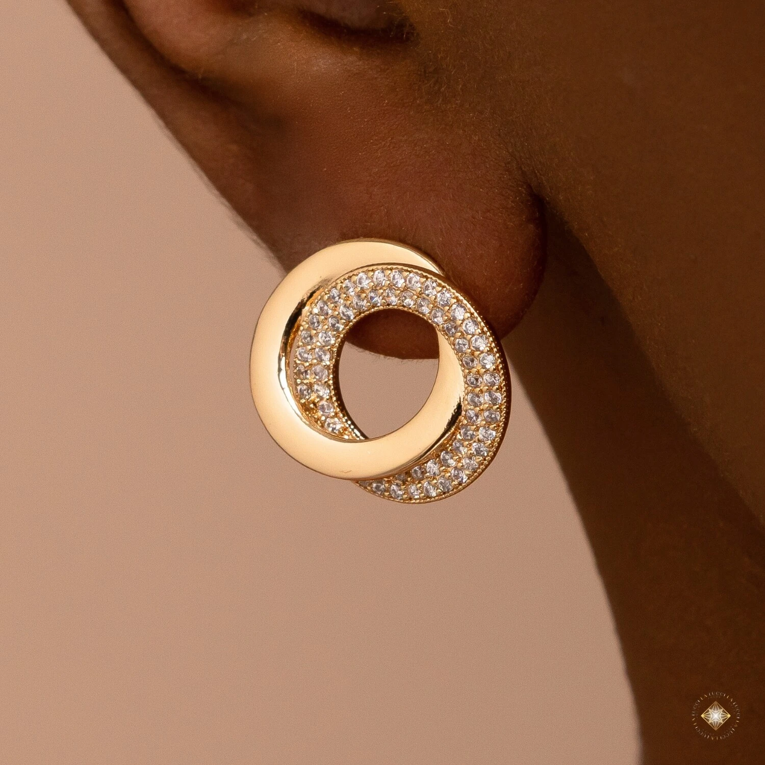 O Brinco Elos Entrelaçados Cravejados combina design contemporâneo com brilho sofisticado. Sua composição de elos circulares interligados cria um visual moderno e elegante, perfeito para destacar o look com personalidade.