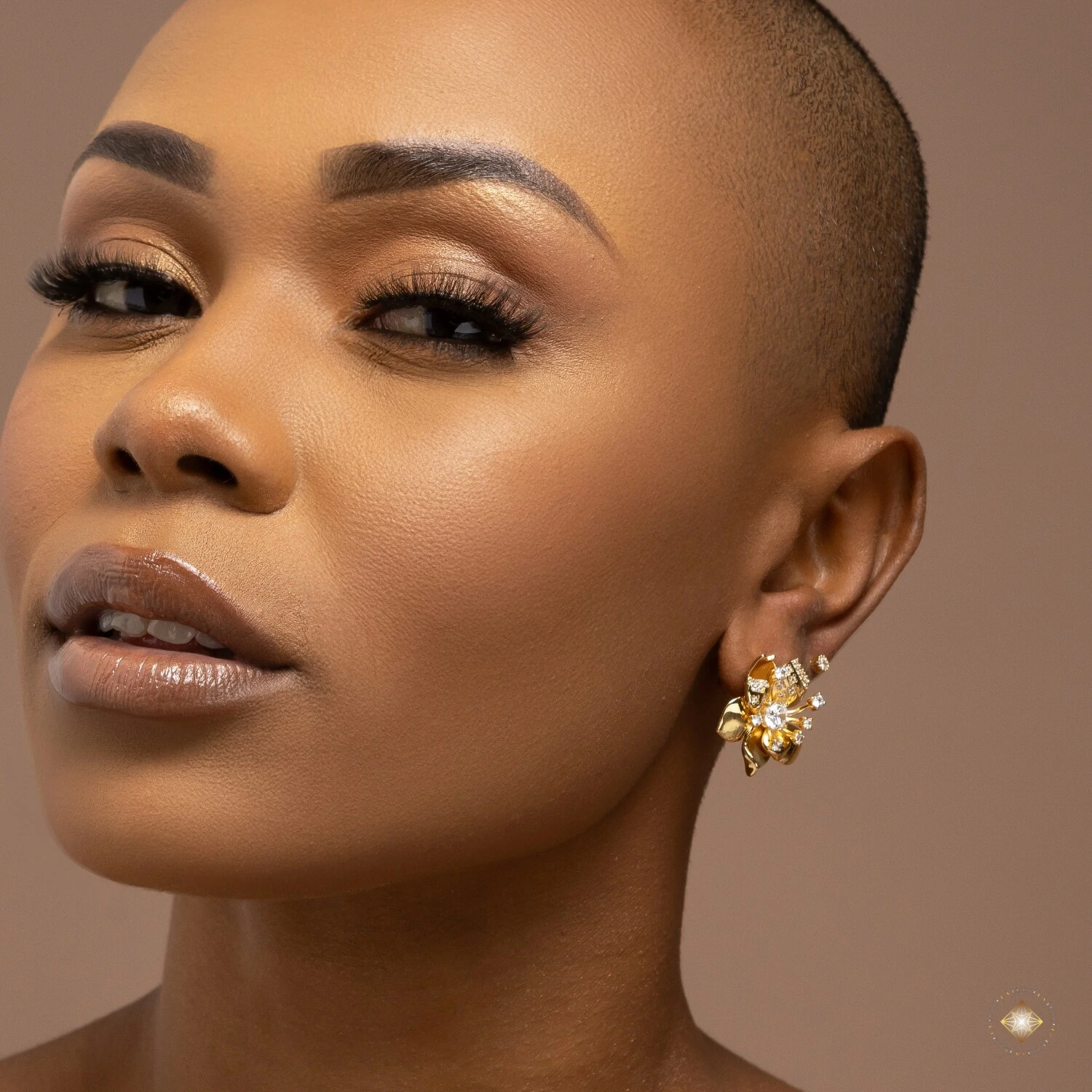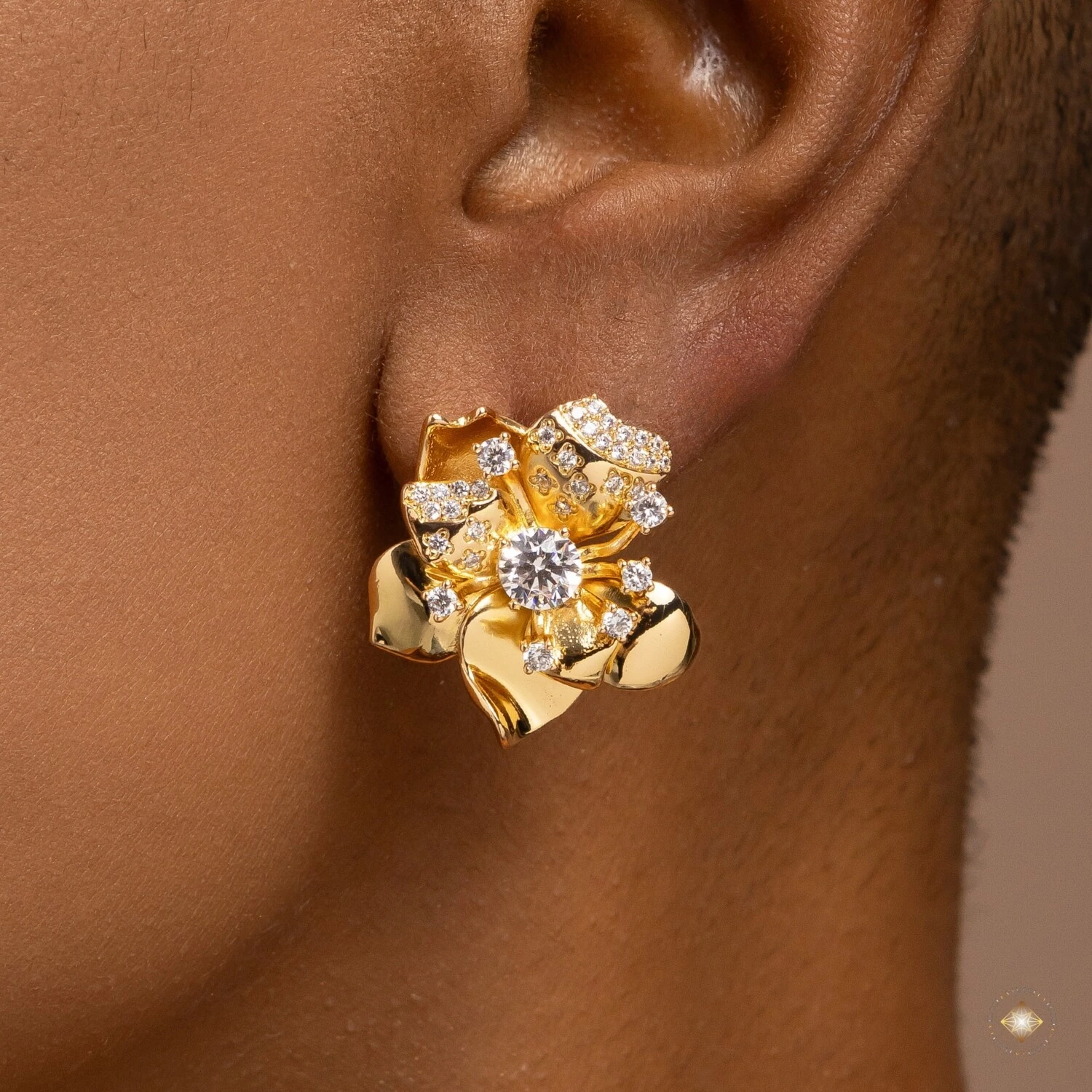 O Brinco Flor Lisa com Zircônias é uma peça marcante, feminina e absolutamente encantadora. Seu design floral traz pétalas lisas, volumosas e ricamente trabalhadas, criando um visual sofisticado e cheio de presença.