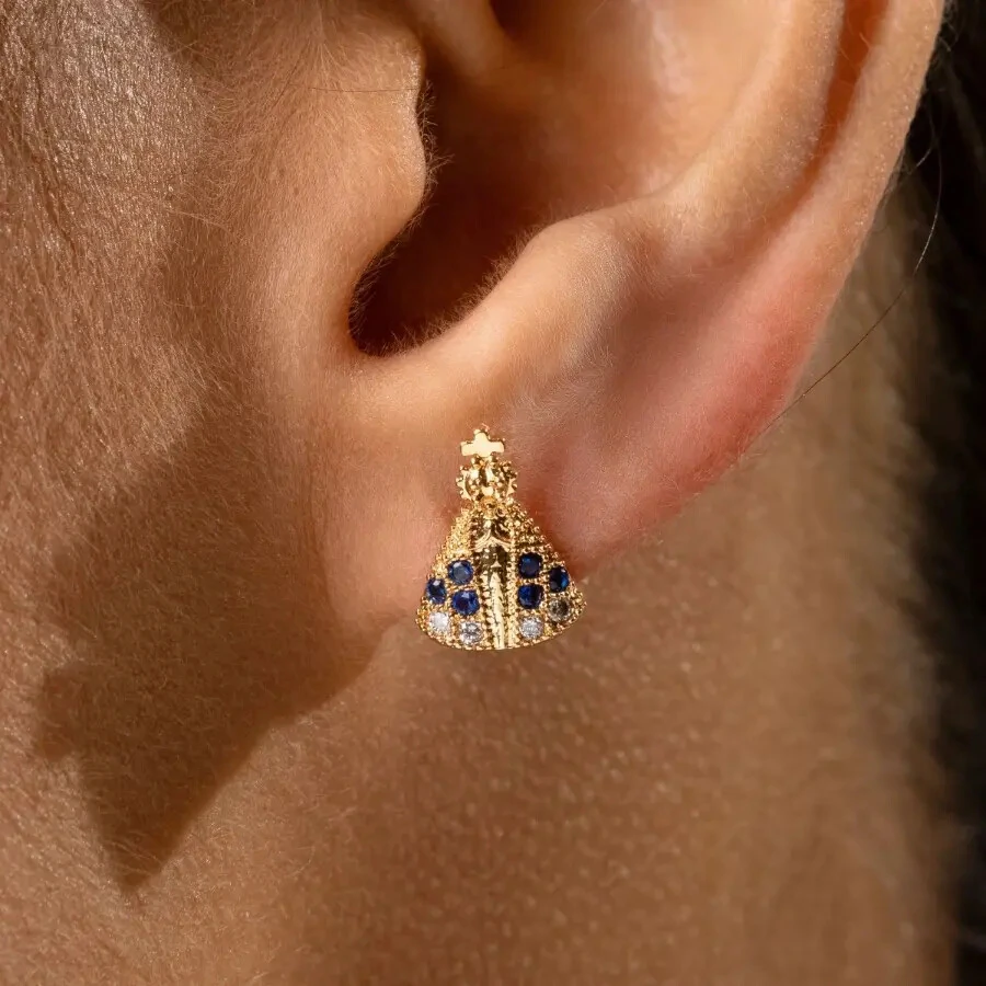 O Brinco Nossa Senhora Aparecida Cravejado Safira é uma peça delicada que une fé, beleza e significado em um design encantador. Inspirado na padroeira do Brasil, ele traz riqueza de detalhes que tornam o acessório ainda mais especial.