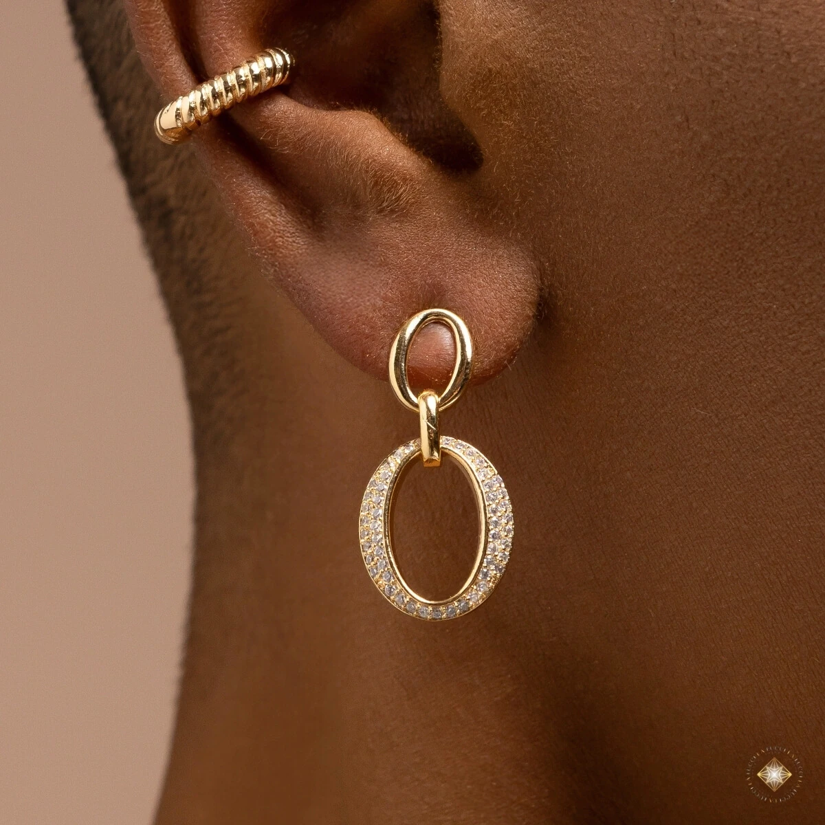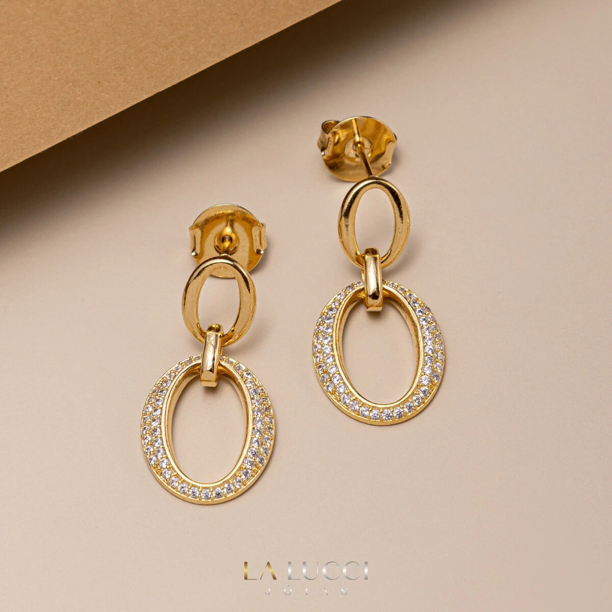 O Brinco Oval Pendurado Cravejado une leveza e estilo em um design moderno e elegante. Com acabamento polido e detalhe em zircônias cravejadas, ele é ideal para quem busca um acessório delicado, mas com presença.