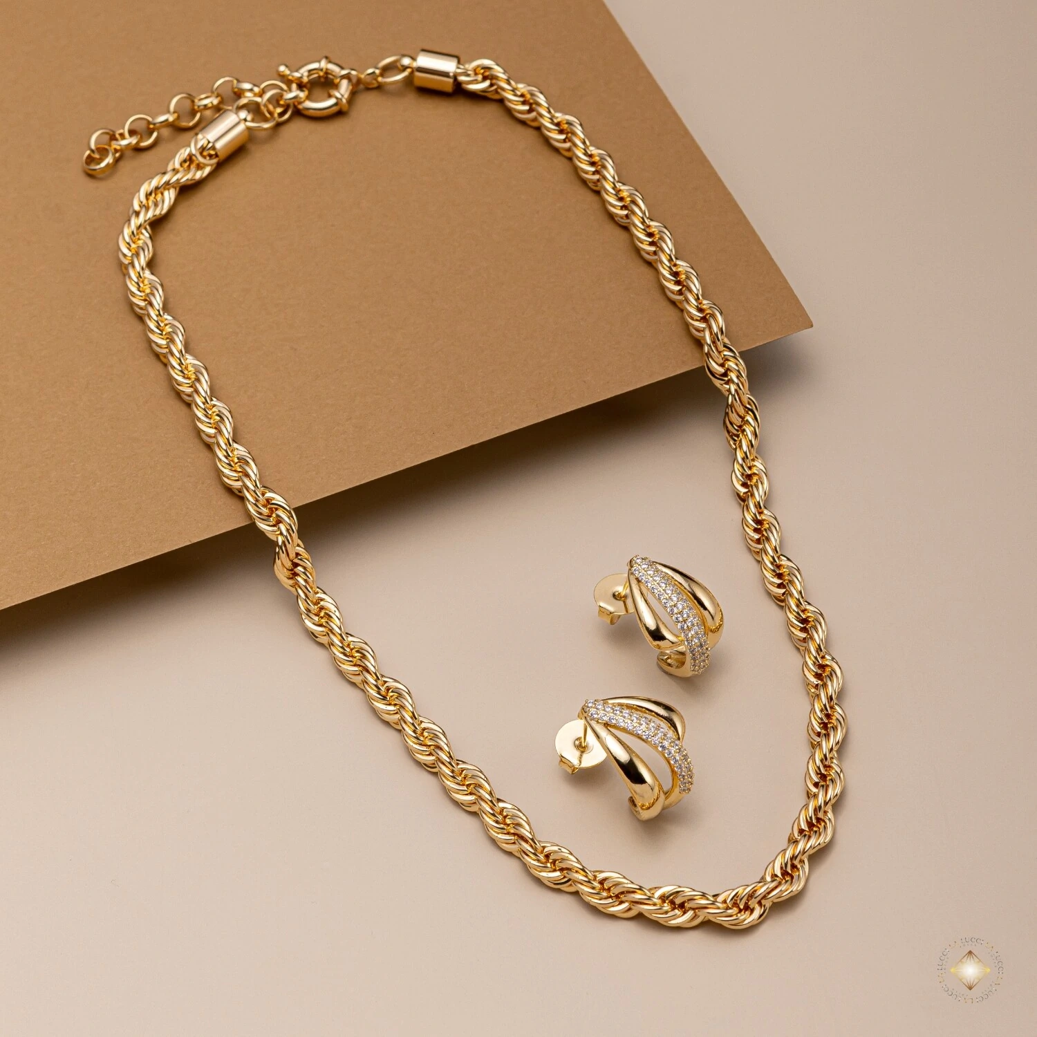 O Colar Torcido em Malha Baiana é um clássico atemporal que nunca sai de cena. Seu design entrelaçado traz movimento, brilho e presença na medida certa, valorizando o colo com elegância e sofisticação.