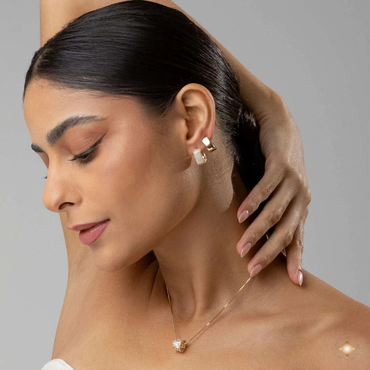 A Dupla de Argolas Quadradas Lisa e Cravejada é perfeita para quem ama versatilidade sem abrir mão do estilo. O kit é composto por dois pares de argolas: um com acabamento liso e polido, e outro totalmente cravejado com zircônias, criando um contraste elegante e moderno.