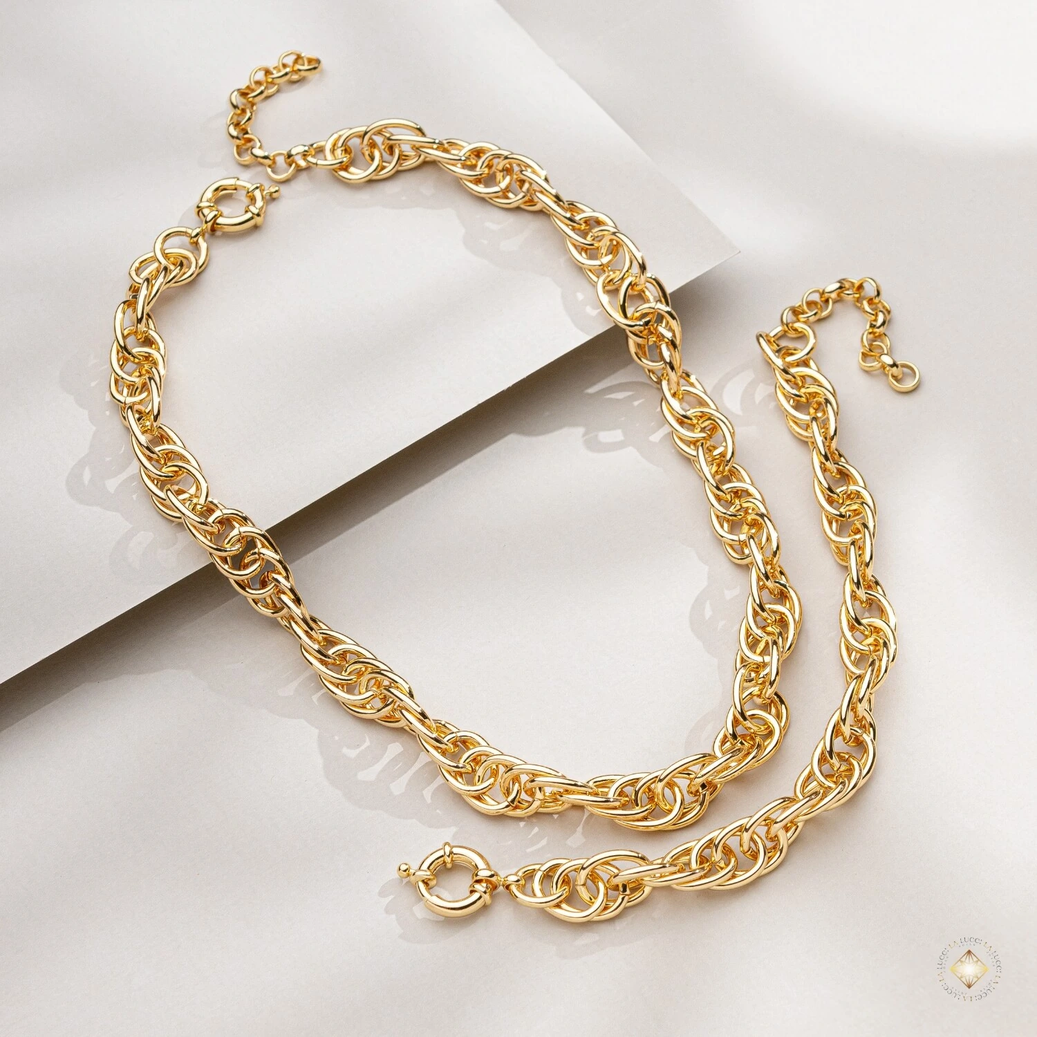 Seu design com elos entrelaçados cria um visual encorpado e estiloso, trazendo destaque imediato ao pulso. O acabamento polido valoriza o brilho da peça, tornando-a ideal tanto para o dia quanto para ocasiões especiais.