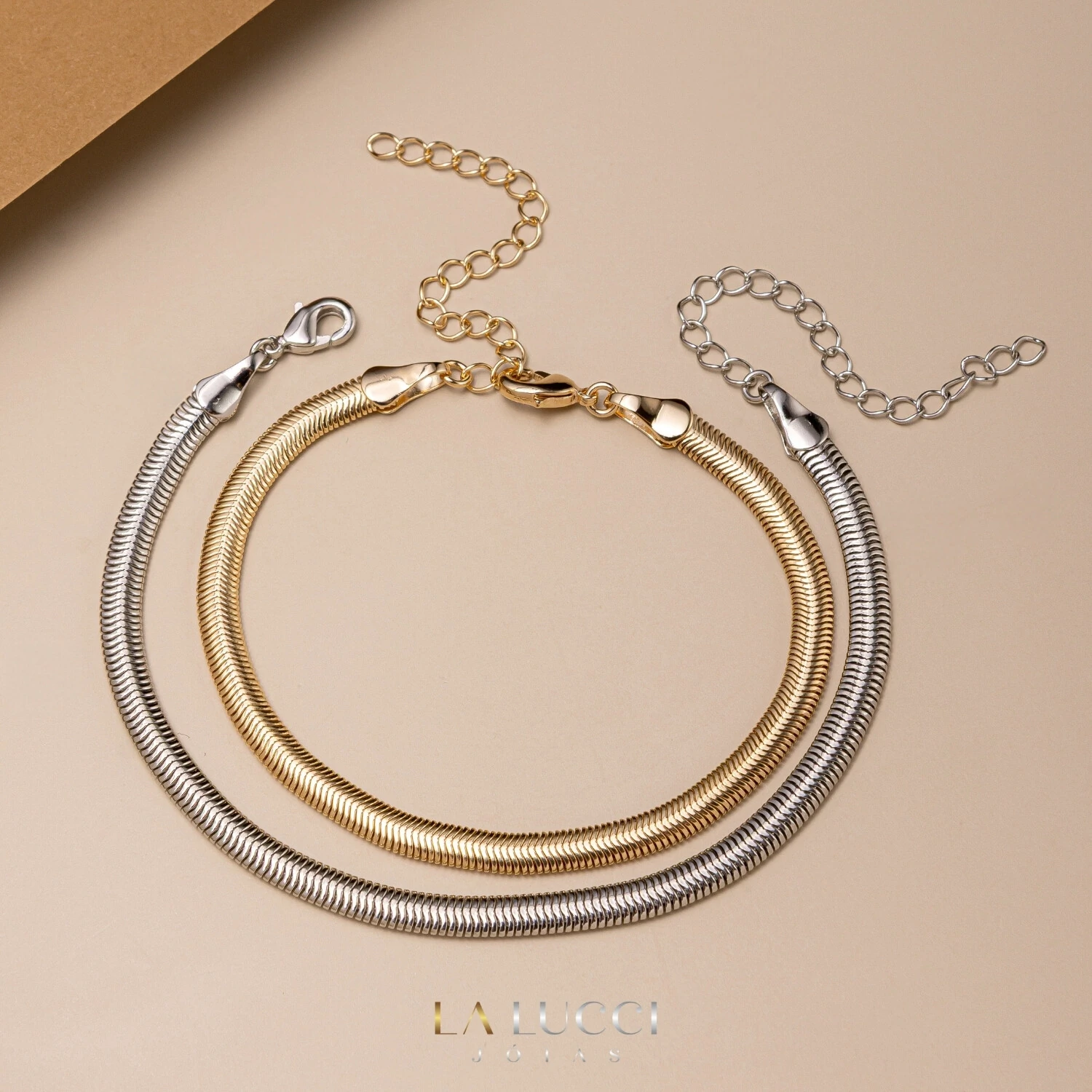 A Pulseira Snake é o tipo de acessório que transforma qualquer composição. Seu design liso e flexível envolve o pulso com delicadeza e presença, unindo conforto e sofisticação em uma peça só.