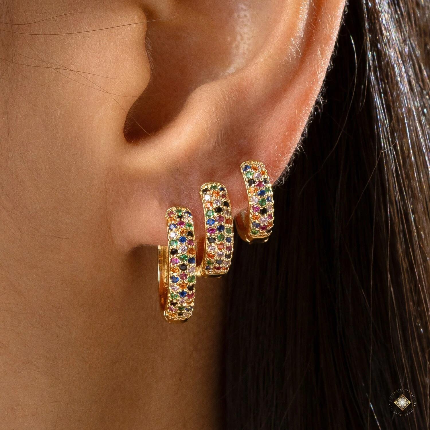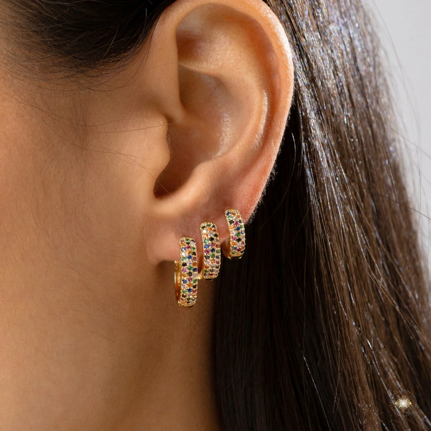 O Trio de Argolas com Zircônias Coloridas é a escolha ideal para quem ama composições modernas e cheias de personalidade. Com três tamanhos diferentes, ele permite criar combinações versáteis e estilosas no primeiro, segundo e terceiro furo.