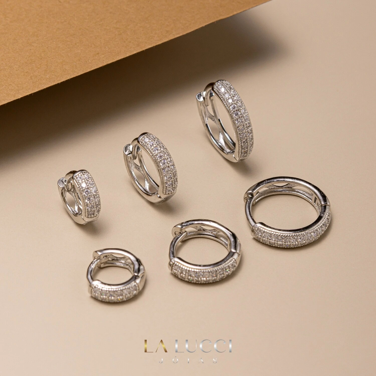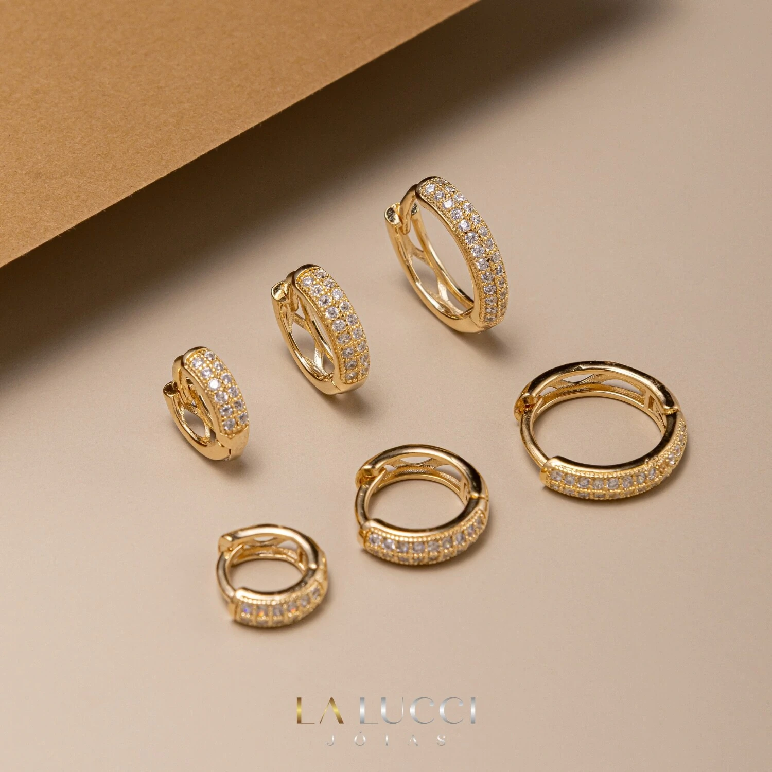 O Trio de Argolas Duas Fileiras Cravejadas é aquele conjunto curinga que ilumina qualquer produção com elegância e versatilidade. Cada argola possui duas fileiras de zircônias brilhantes, criando um efeito luxuoso e moderno, perfeito para quem ama acessórios com presença e delicadeza ao mesmo tempo.
